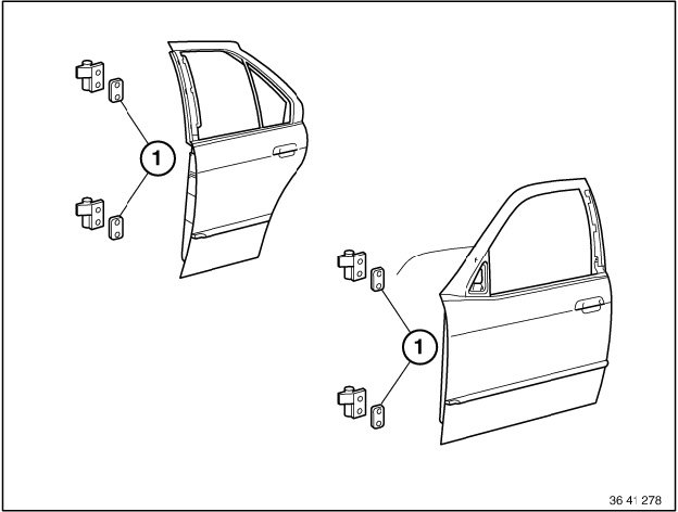 - In case of considerable deviation, correct thickness of shim on hinge (2).
