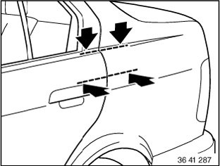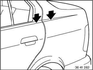 Gap dimensions, refer to Gap dimensions of doors/hood and luggage compartment lid, refer to Window and door seams E46 4-door.