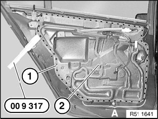 - In case of replacement or partial detachments, lay 6 mm dia. butylene tape (sourcing reference: BMW Parts Service) depending on the conditions on inner door panel or sound insulation.