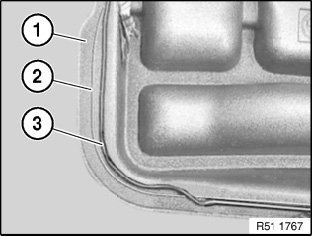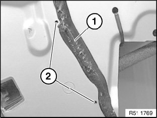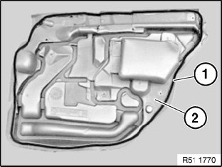 Using special tool 00 9 317, lever out sealing bead (1) of sound insulation (2) completely or if necessary partially.