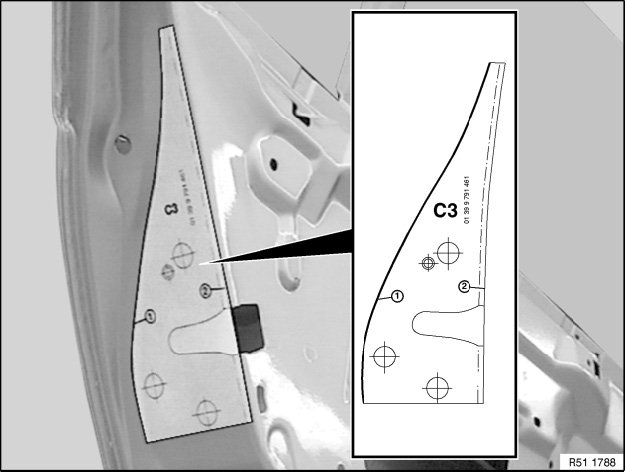 Positioning aid "C3" for rear left door (positioning aid "D3" for rear right door)