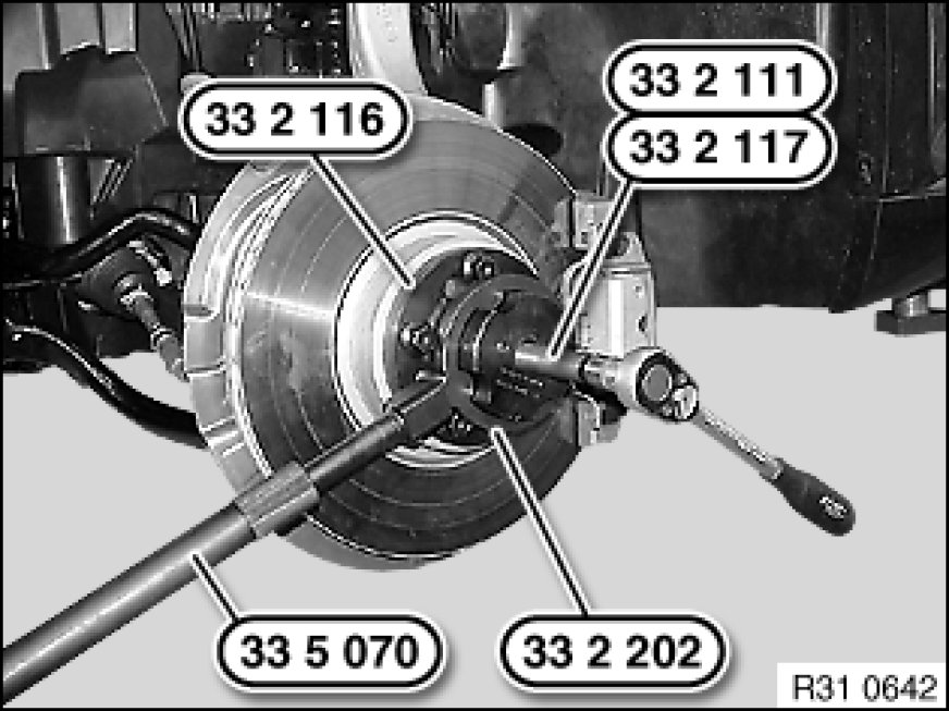 31 60 ... Pressing output shaft out of drive flange (wheel hub) and drawing in
