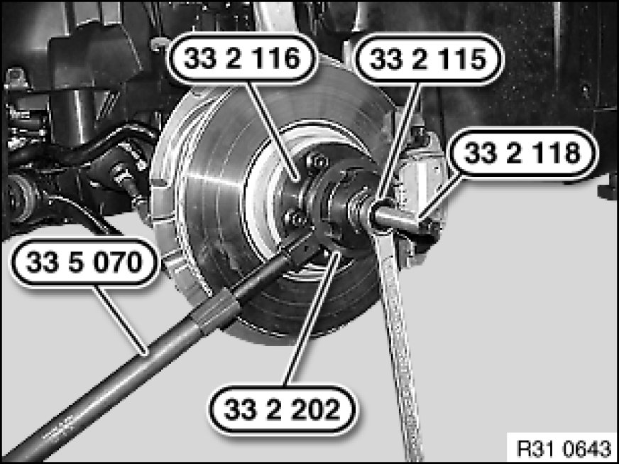 31 60 ... Pressing Output Shaft Out of Drive Flange (Wheel Hub) and Drawing In