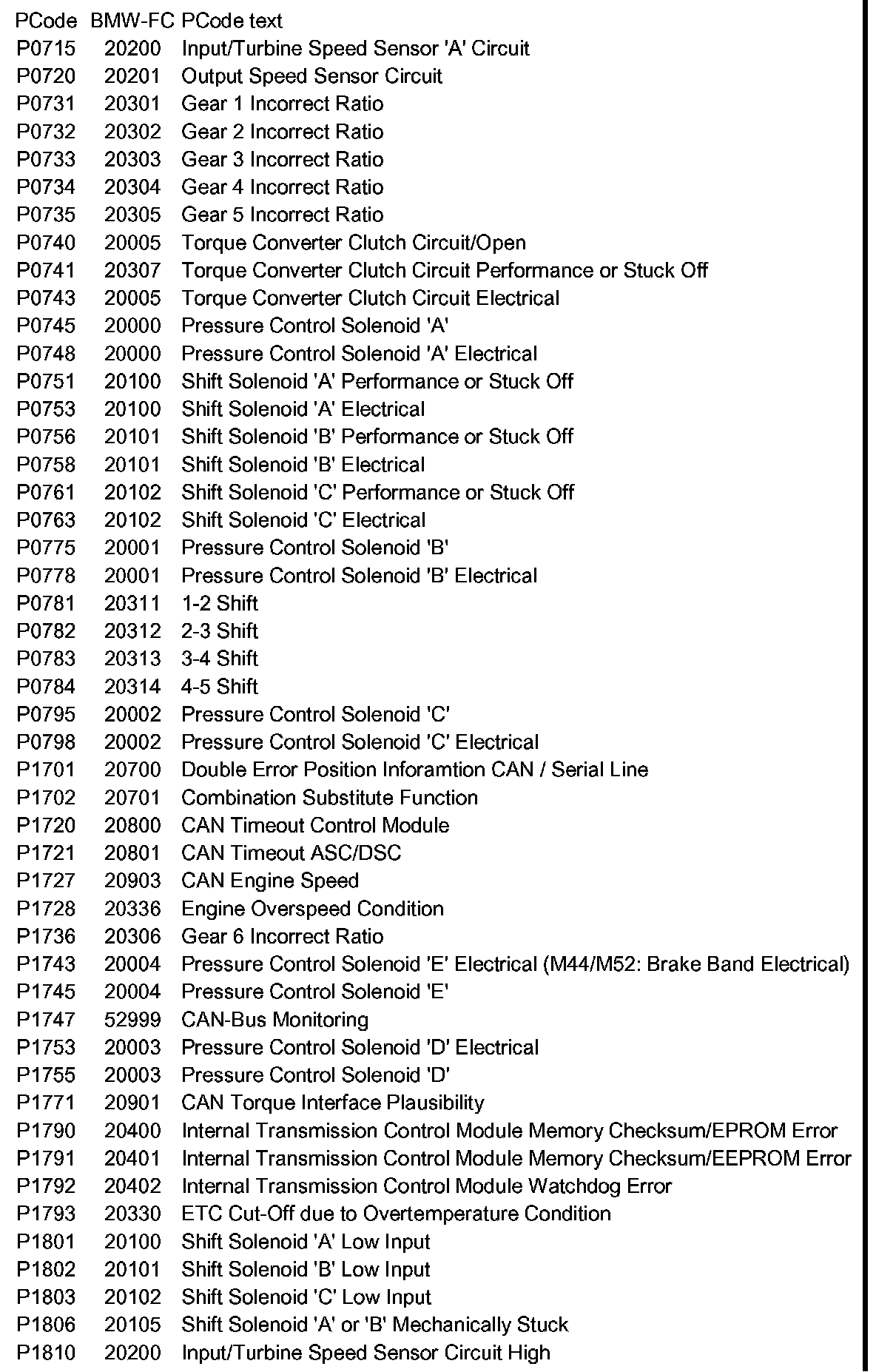 Diagnostic Trouble Code Descriptions