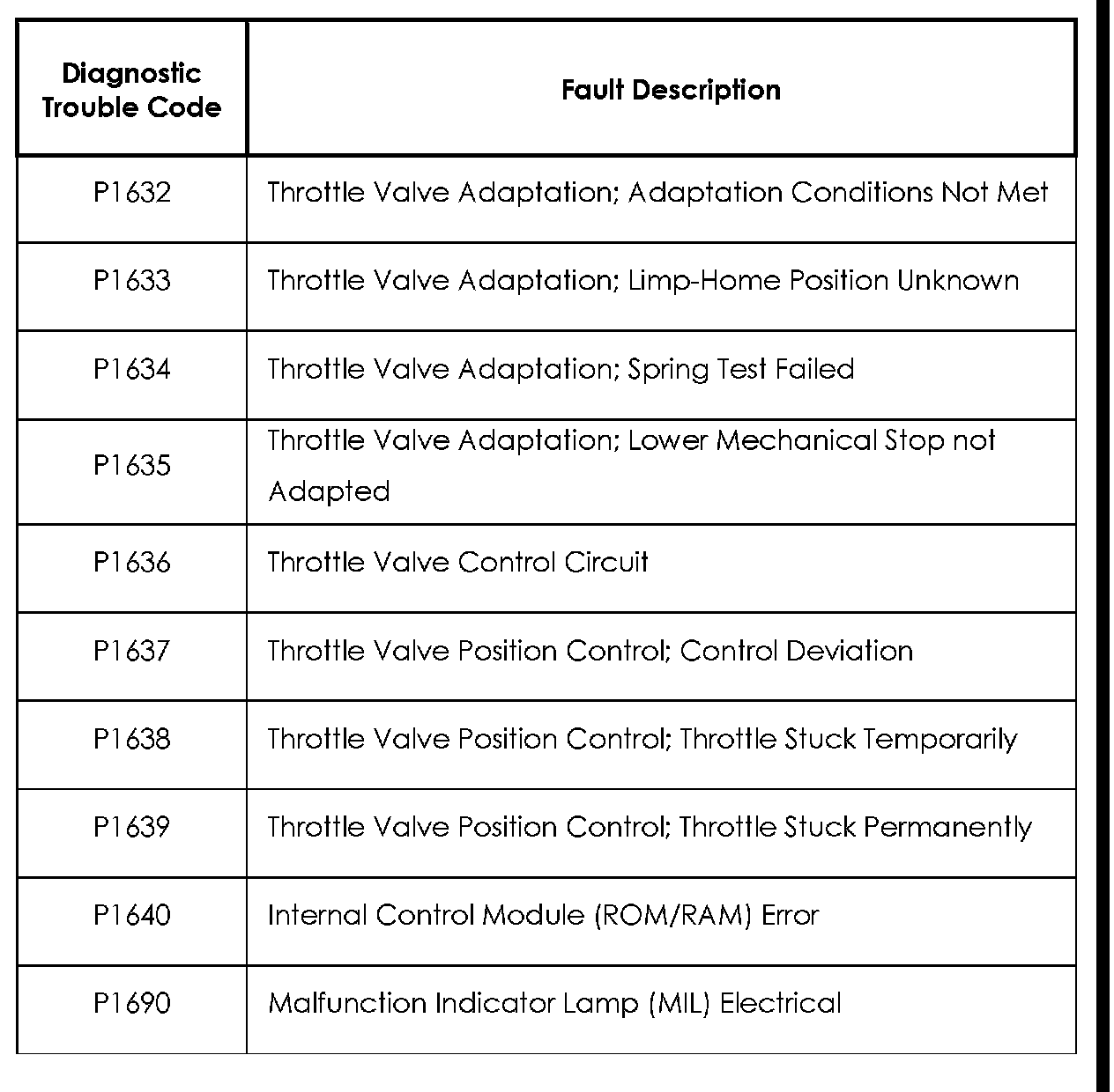 Diagnostic Trouble Code Descriptions