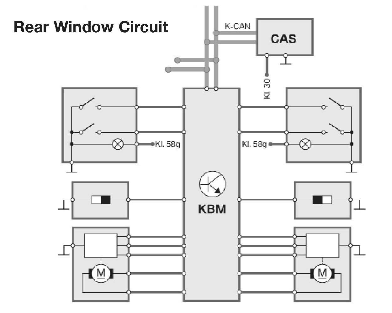 Additionally the KBM allows also for contact and control of the rear windows through CAN communication with the SGM.