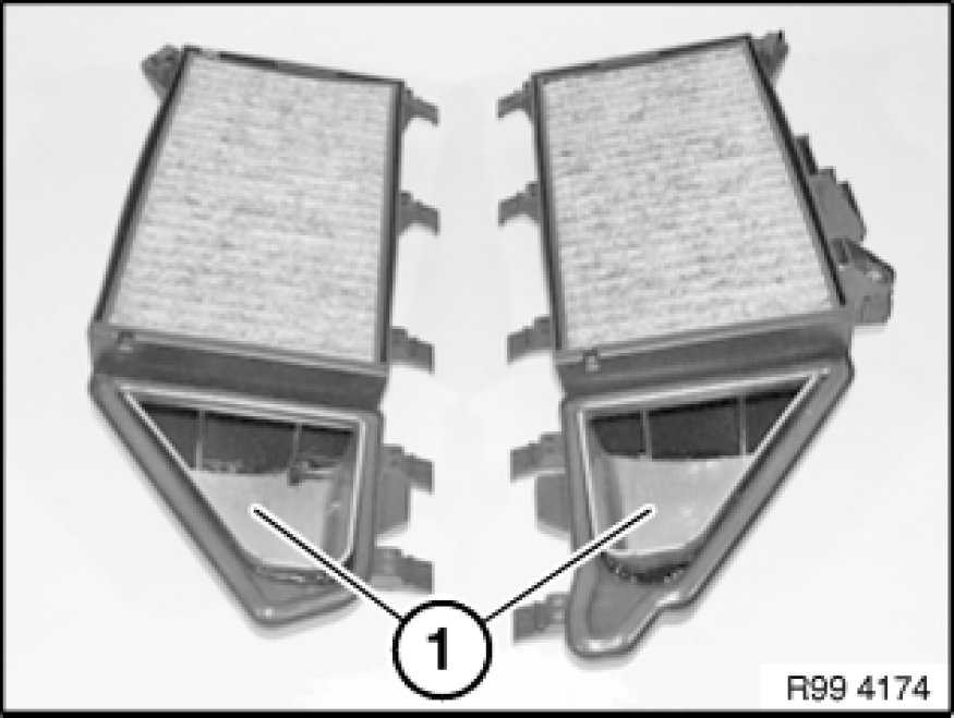 Armor plating (1) stuck into left/right microfilter Replacing Microfilter for Interior Ventilation air duct.