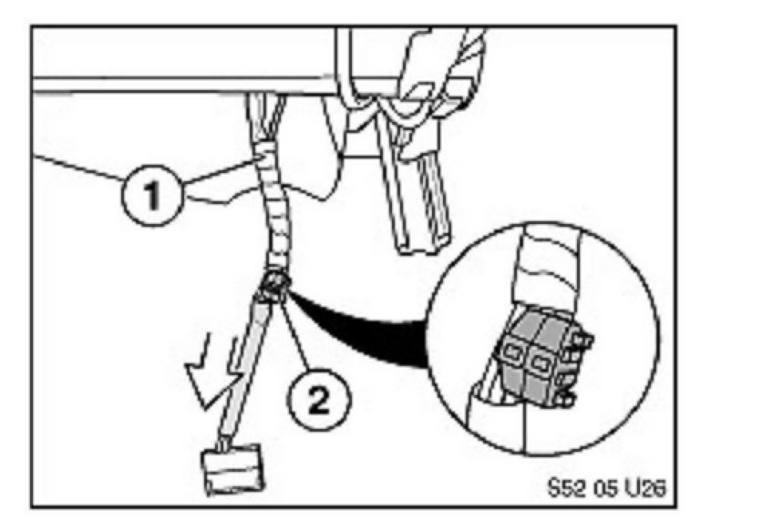 13. Wrap the blue wire and the wiring harness (1) with electrical tape up to the snap connector (2).