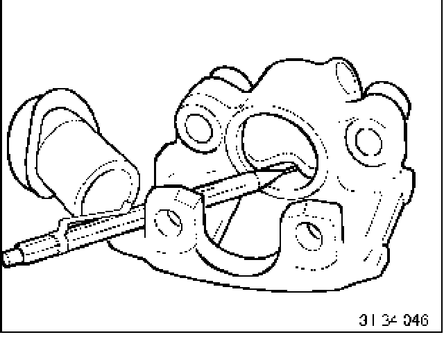 To protect piston, place a protective plate (e.g. hard wood or hard felt) in caliper recess.