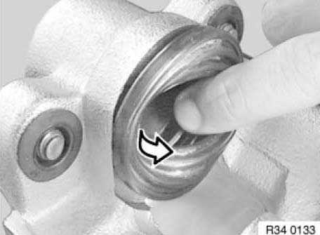 34 21 812 Overhauling left or right rear brake caliper (brake caliper removed)Take off plastic caps (1).