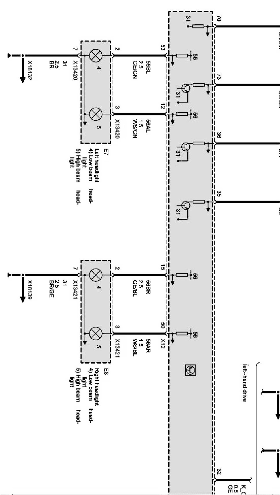 Low Beam/High Beam (5 Series Without Xenon Lights Up to 03/05)
