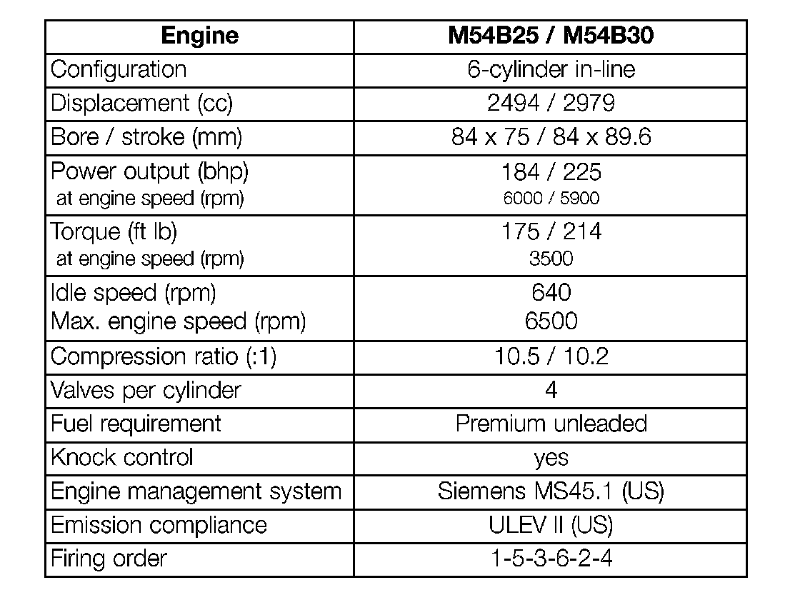 DescriptionThe E60 530i is equipped with the M54 engine. The M54 engine is adapted for use in the E60 and the changes include: