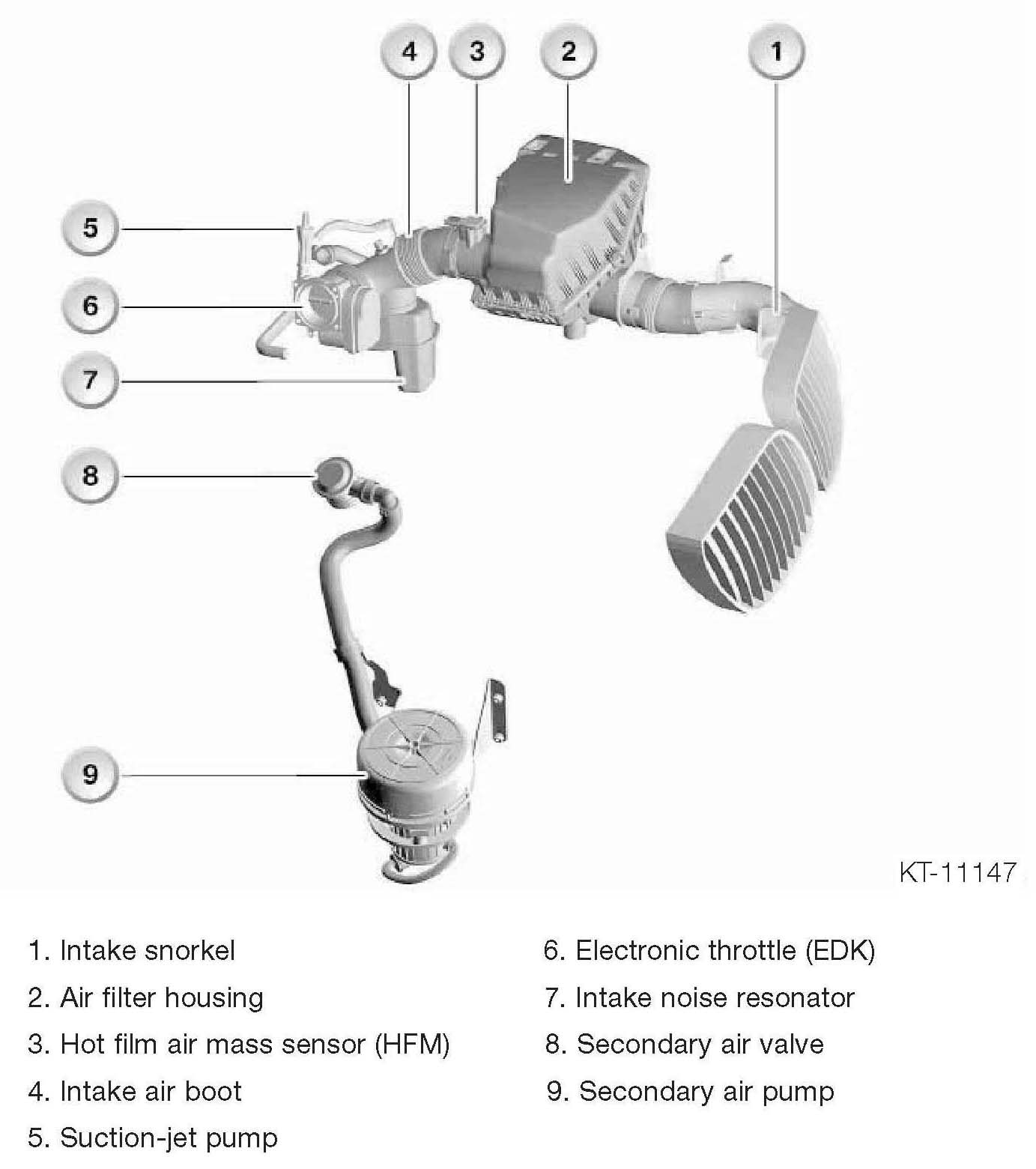 The HFM is a compact plug in design, it is mounted directly into the clean air outlet of the air filter housing. This design eliminates the grille in front of the HFM. This reduces flow resistance in the air intake ducting, resulting in lower fuel consumption.