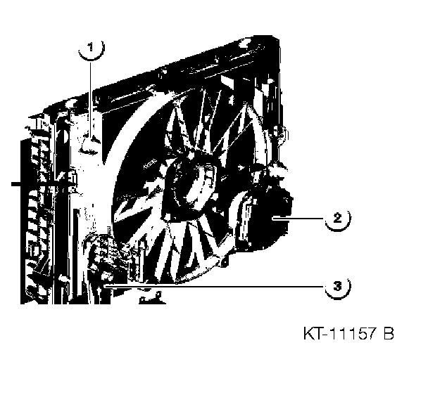 The electric fan can be removed without removing the coolant connection (1) and the mounting plate with thermostat (3).