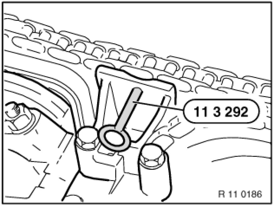 Secure crankshaft in firing TDC position with special tool 11 2 300 11 2 300 Plug Mandrel.