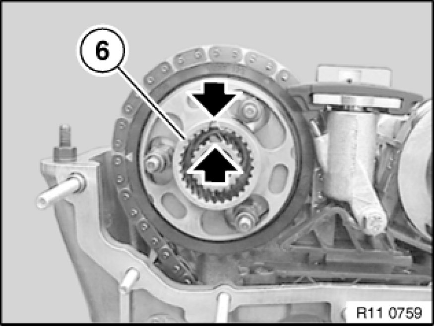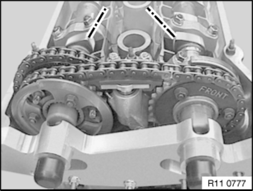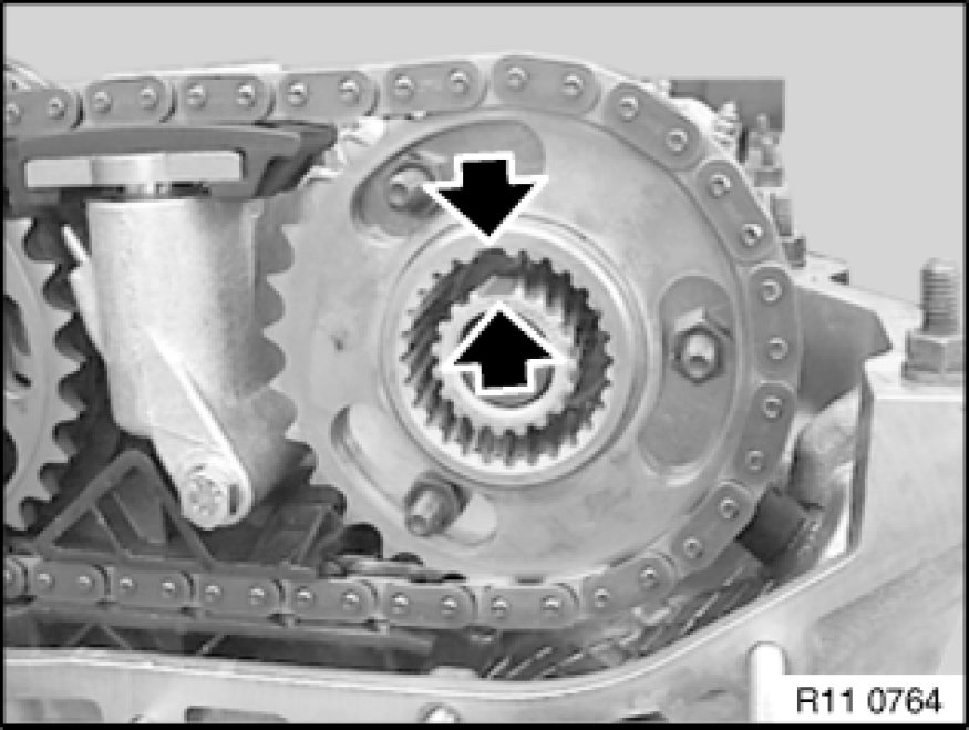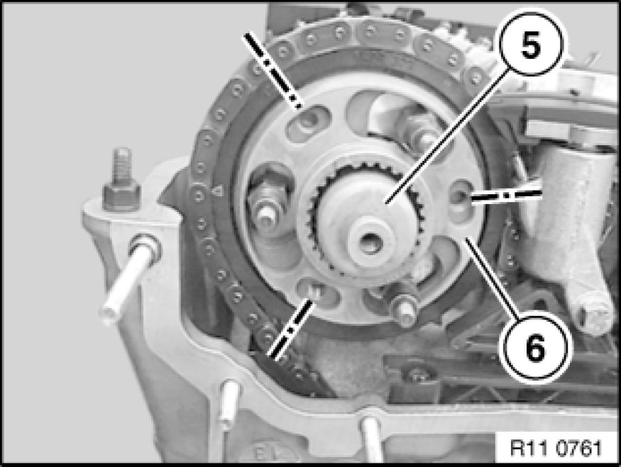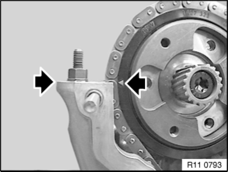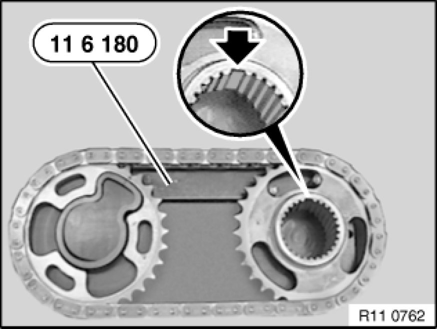 Remove chain with sprocket wheels positioned from special tool 11 6 180 11 6 180 Fixture and so that tooth spaces oppose each other on inlet side.