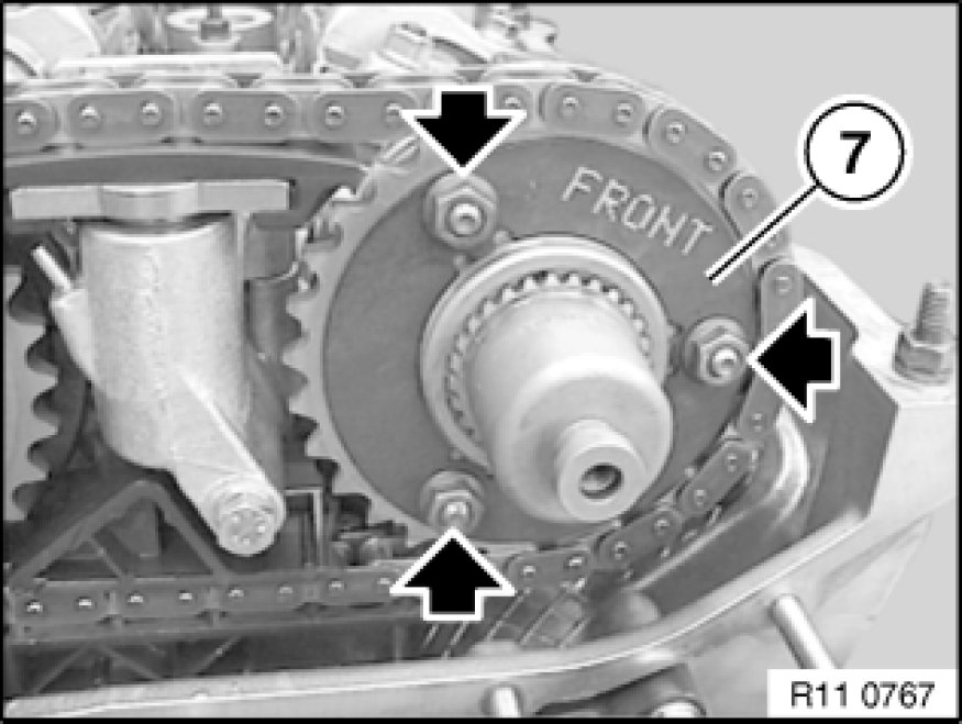 Preload tensioning rail with special tool 11 4 220 11 4 220 Chain Tensioner by rotating adjusting screw with special tool 00 9 250 00 9 250 Torque Wrench with Flexible Extension or standard torque wrench to 0.7 Nm.