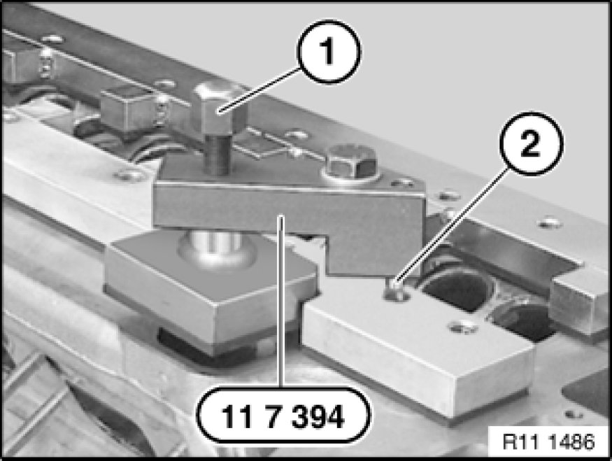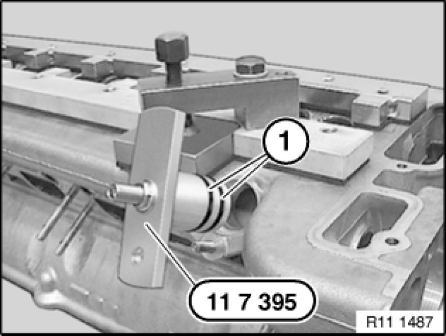 Insert screw (1) by hand until special tool 11 7 393 11 7 390 Complete Pressure Testing Fixture rests on sealing surface.