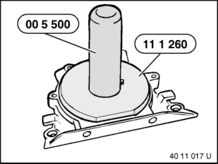If necessary, lift out the radial sealing ring and drive in new sealing ring using special tool 11 1 260 in conjunction with special tool 00 5 500.