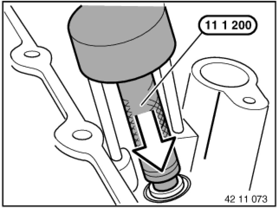 Press valve stem seal firmly home by hand with special tool 11 1 200 11 1 200 Drift.