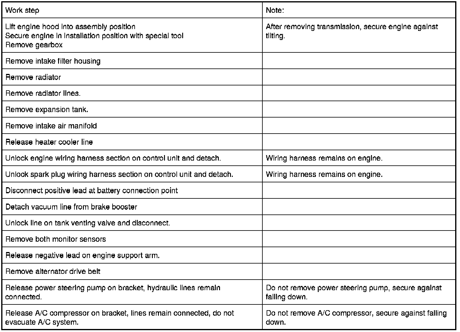 Suspend engine from special tool 11 0 020 11 0 020 Engine Hoist for Removing and Installing Engines.