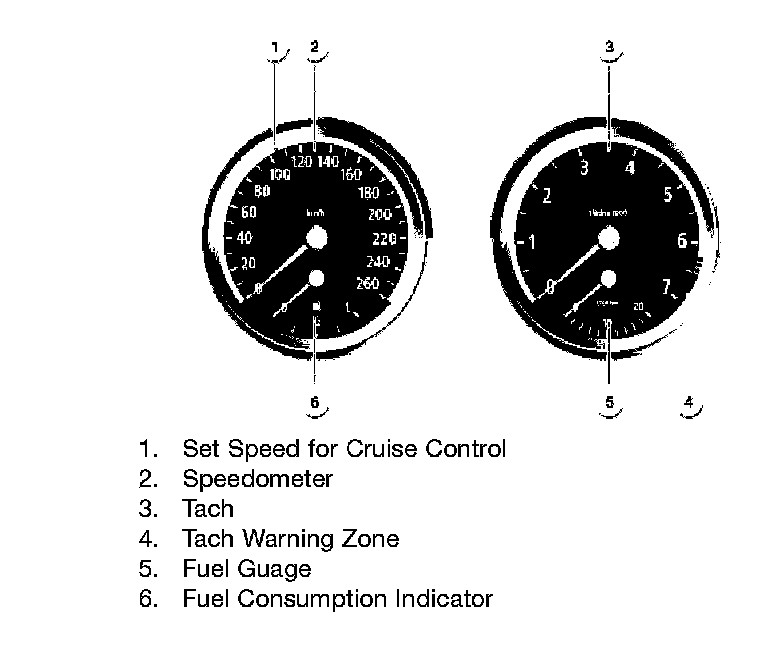 The set speed for the cruise control system and the tech warning are displayed by means of annular indicators (moving rings).