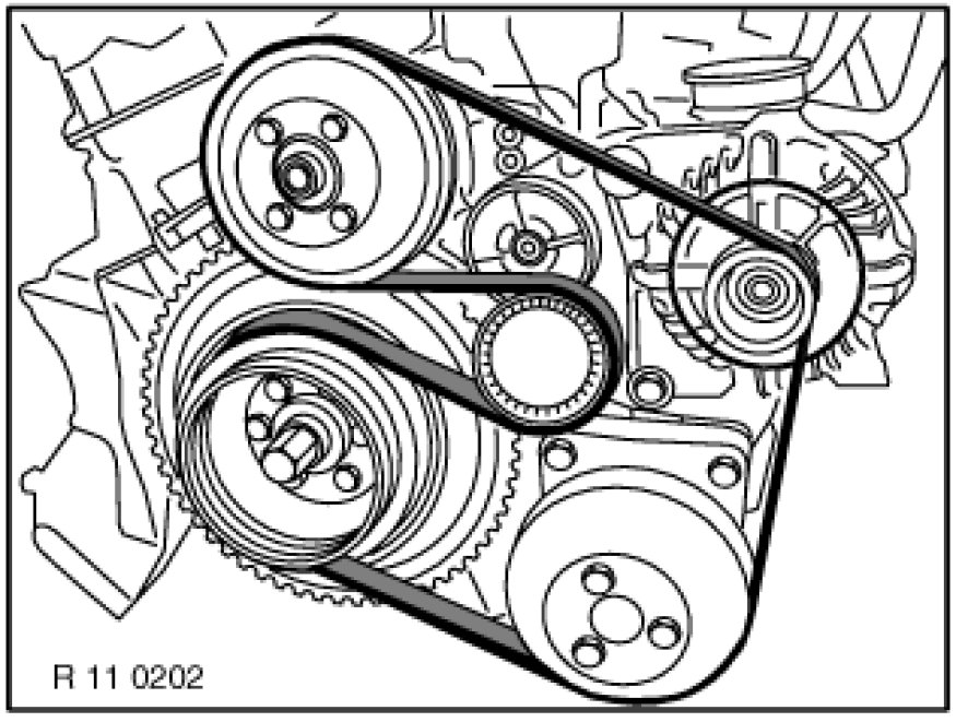 11 28 010 - Replacing alternator drive belt (M52/S52/M52TU/M54/M56)