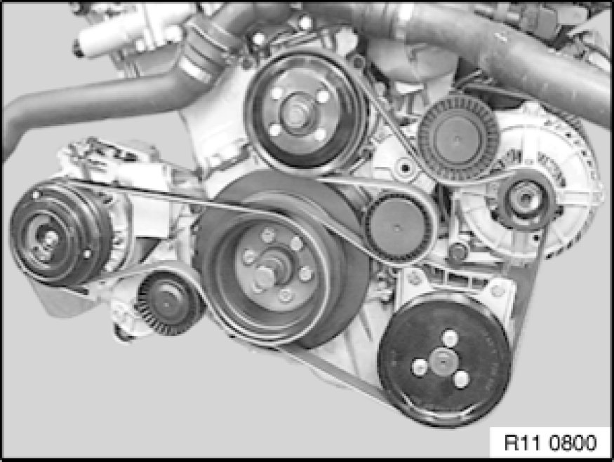 - Remove A/C compressor drive belt Replacing A/C Compressor Drive Belt (M52/S52/M52TU/M54/M56)