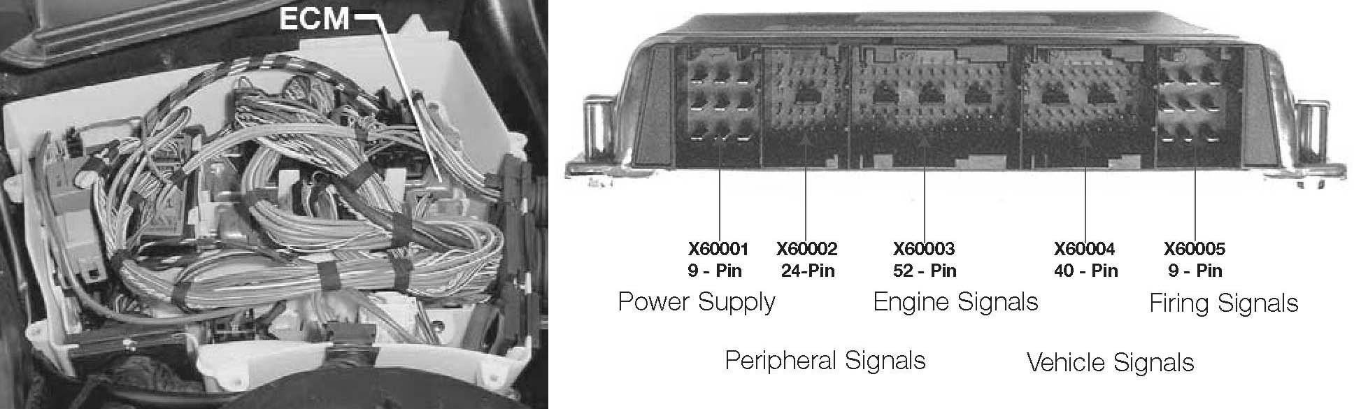 The 134 pin ECM is manufactured by Siemens to BMW specifications. The ECM is the SKE (standard shell construction) housing and uses 5 modular connectors. For testing, use the Universal Adapter Set (breakout box) Special Tool # 90 88 6 121 300.