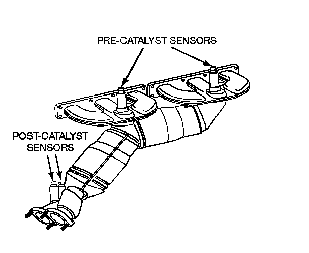 The sensors are mounted in the hot exhaust stream directly in front of the catalytic converters.
