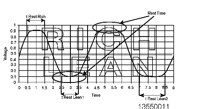 The ECM monitors the length of time the sensors are operating in the lean, rich (including the time of rise and fall) and rest conditions. The evaluation period of the sensors is over a predefined number of oscillation cycles.
