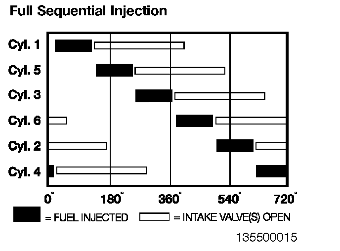During start up, the ECM recognizes the Camshaft Position (Cylinder ID) input. The camshaft position is referenced to the crankshaft position. It then switches the injection to Full Sequential. This process "times" the injection closer to the intake valve opening for increased efficiency.