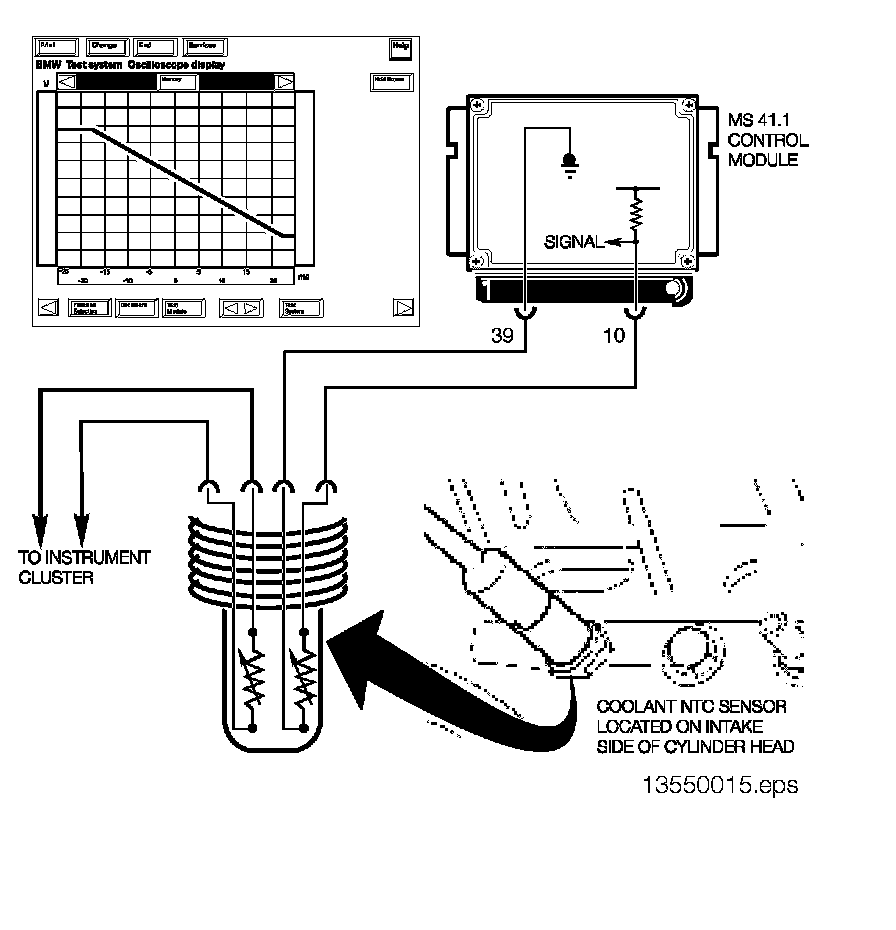 NTC sensors decrease in resistance as the temperature rises and vice versa. The ECM monitors the sensor voltage which varies as temperature changes the resistance value. For example, as temperature rises: