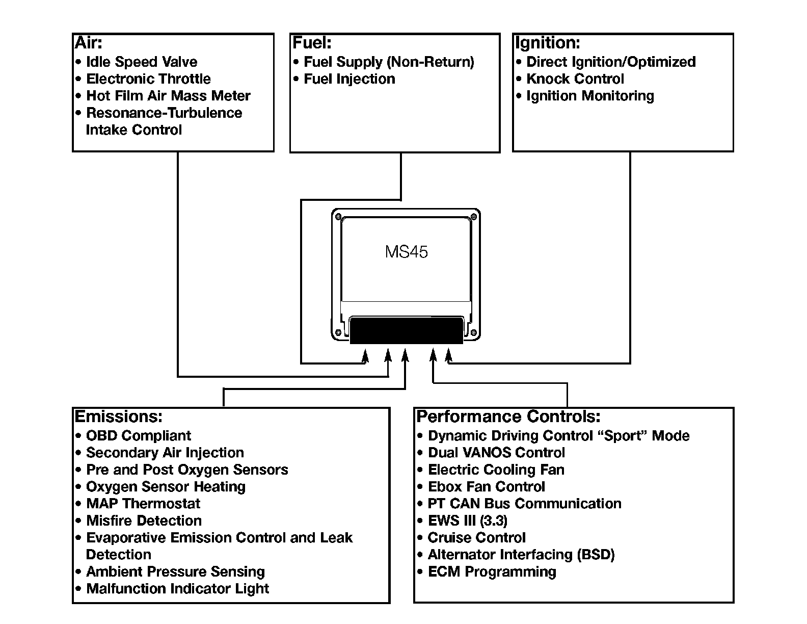 The MS45 system is an evolution of the MS43 system and manages the following functions: