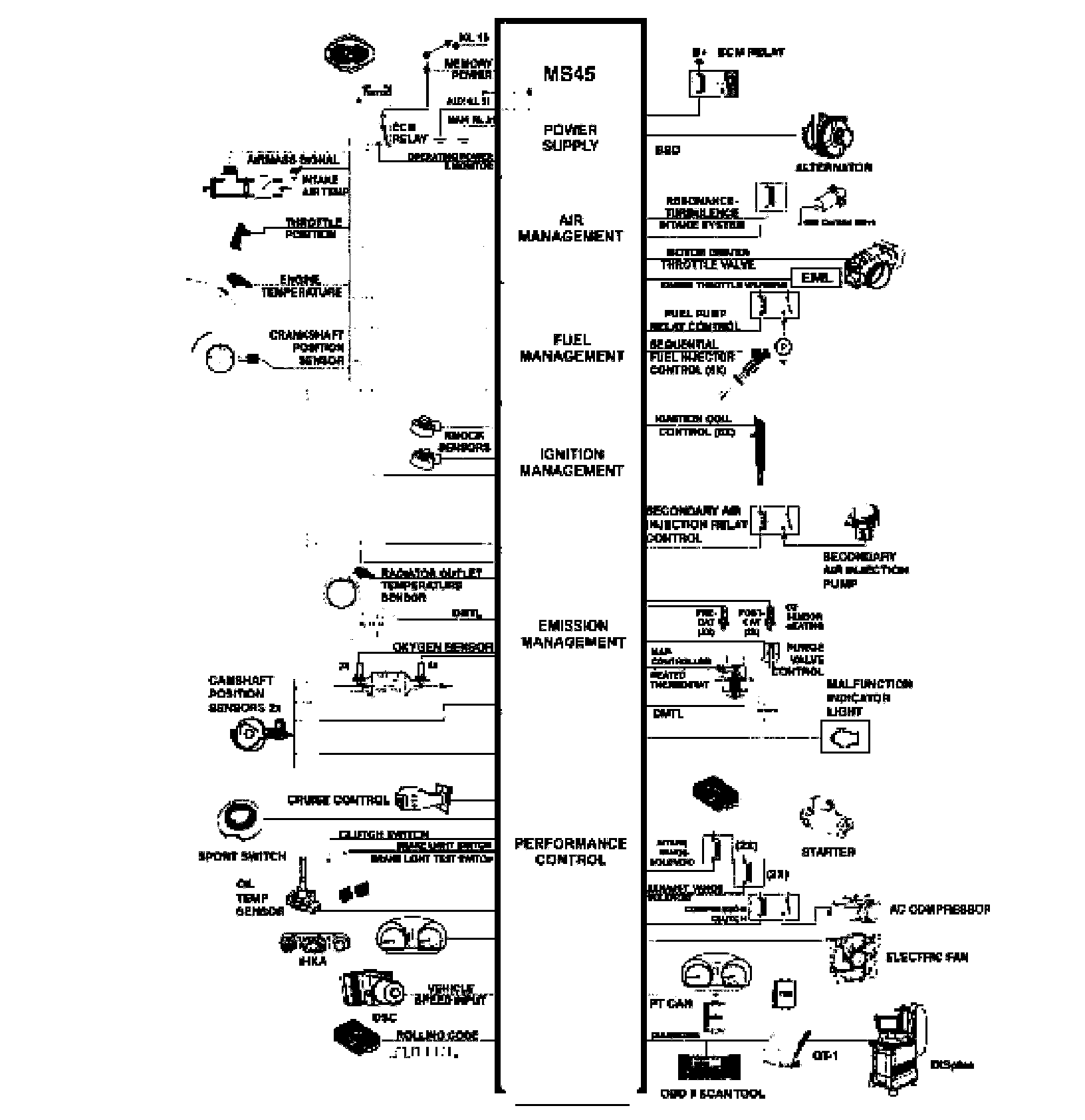 System ComponentsMS45 Engine Control Module: The Engine Control Module (ECM) features a single printed circuit board with two 32bit microprocessors.