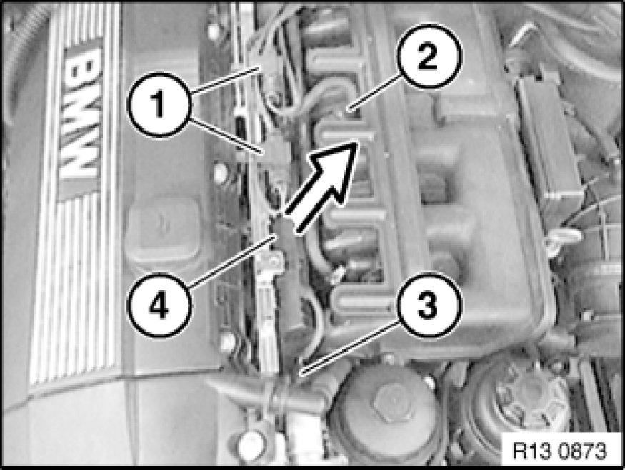 Disconnect plug connection (3) on solenoid valve of VANOS adjustment unit.