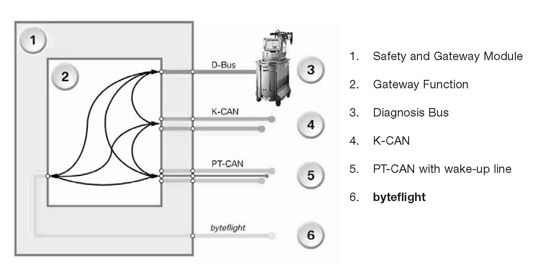 GatewayAll the functions of the Central gateway Module of the E65 are integrated into the SGM. The purpose of the gateway function is to interface the various bus systems of the E60.