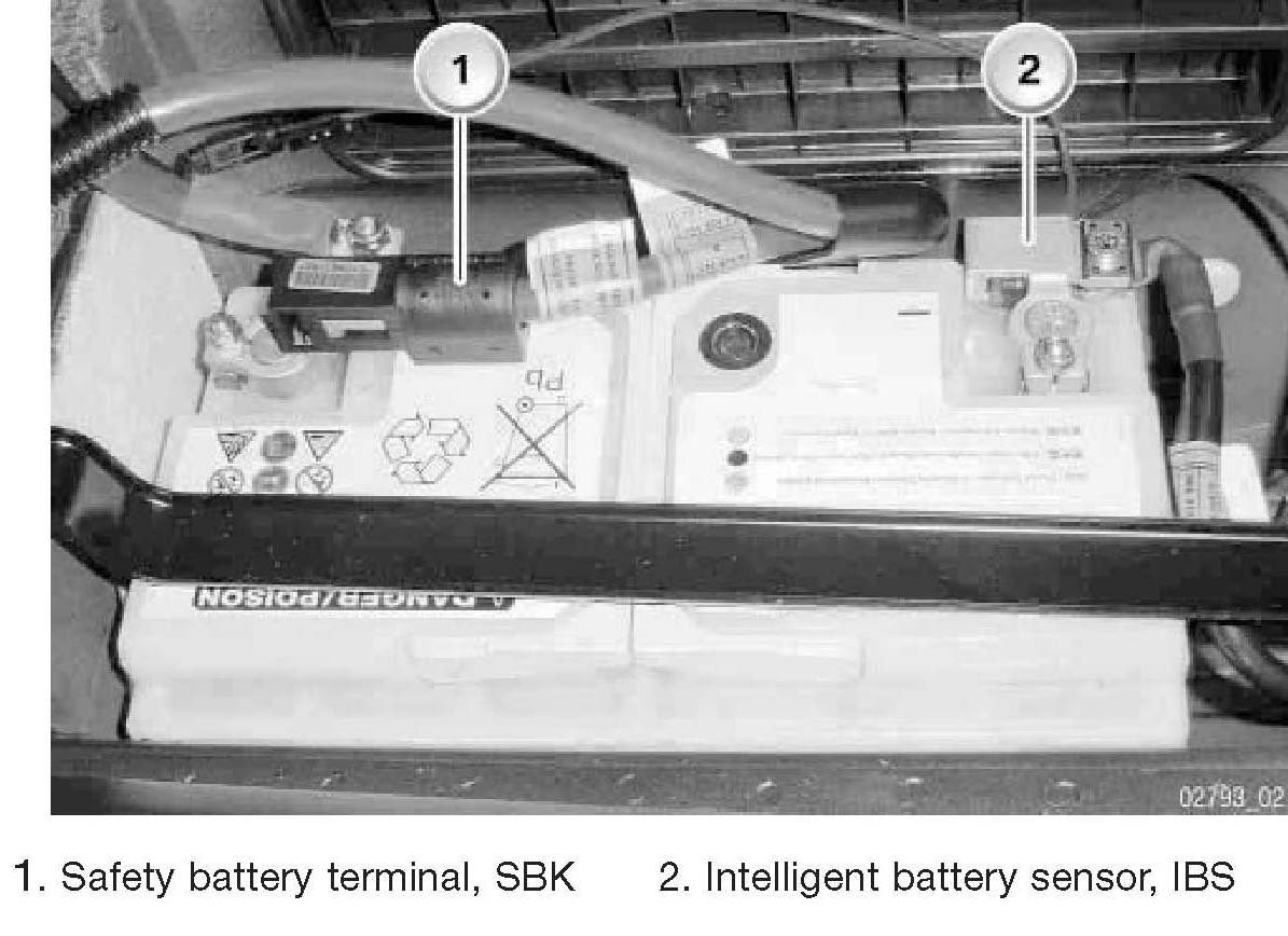 Note: If the safety battery terminal is triggered, the battery cable has to be replaced all the way back to the main adapter point in the luggage compartment.