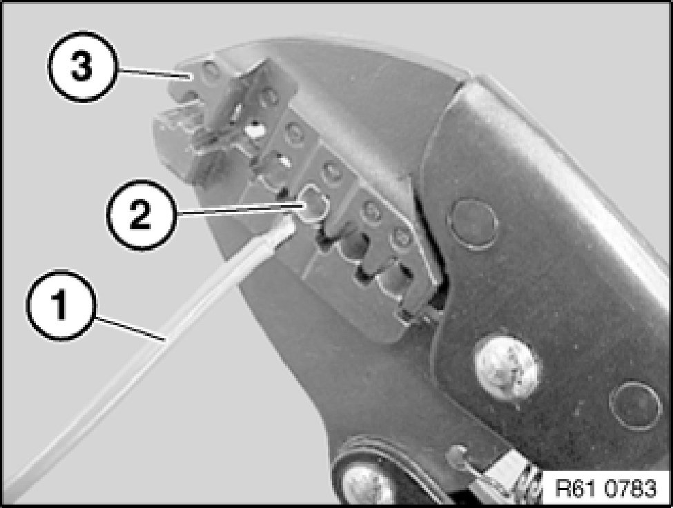 Open crimping pliers (3) and remove cable (2).