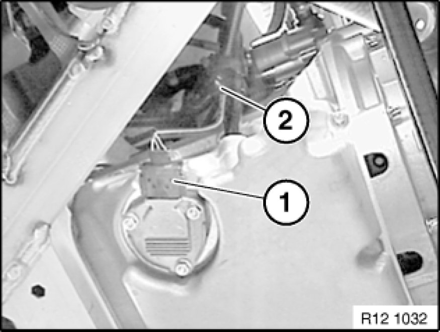 Unlock plug connections (1) and (2) and disconnect.