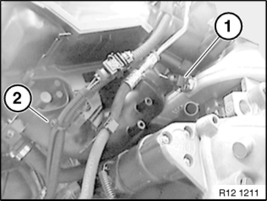 Unlock plug (1) on pulse generator of inlet camshaft and detach from cable duct (2).