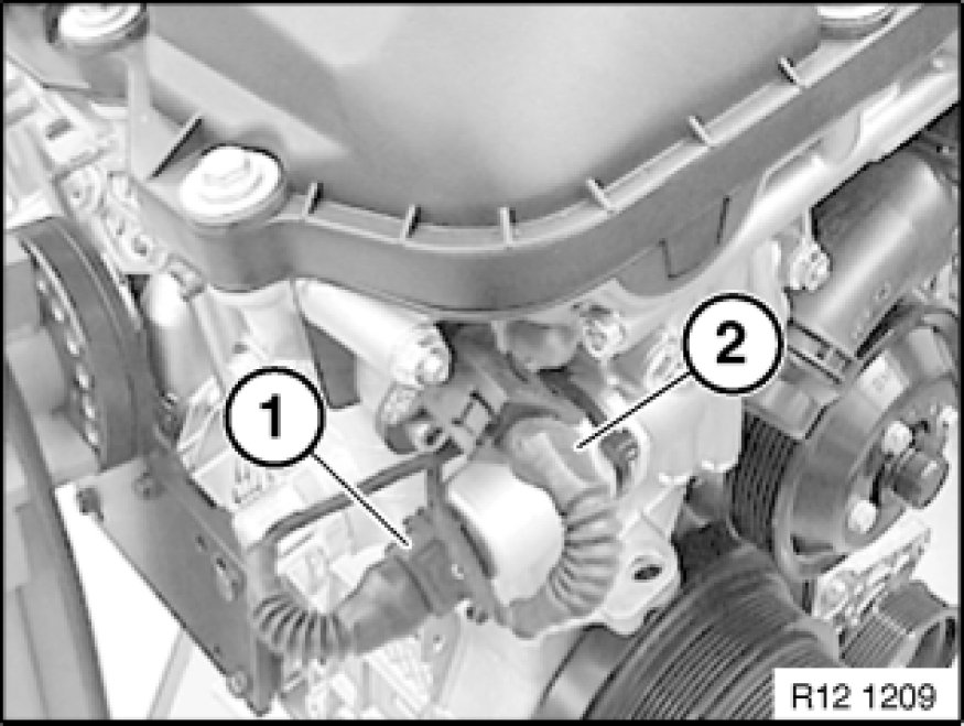 Unlock plug (1) and detach from solenoid valve of VANOS adjustment unit.