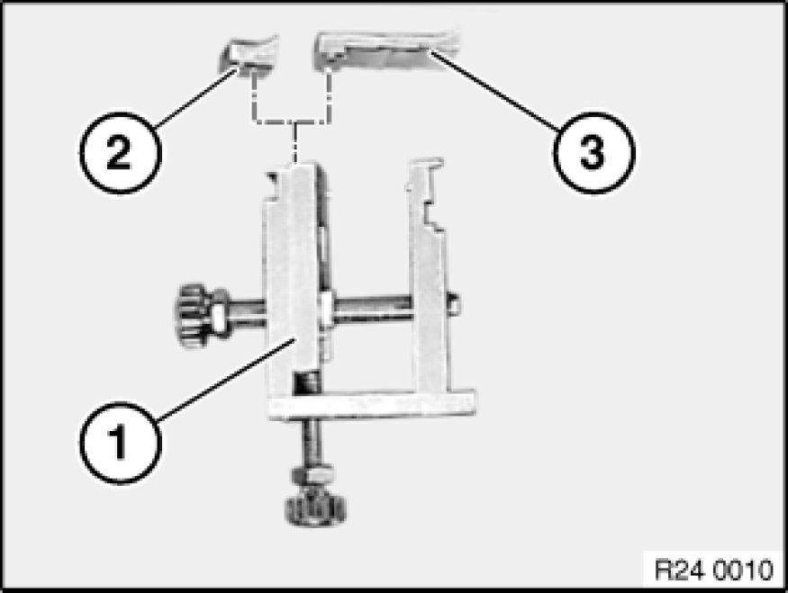Prepare special tool (1) 24 4 161 24 4 160 Support Bracket with shaped piece (2) 24 4 164 24 4 160 Support Bracket.