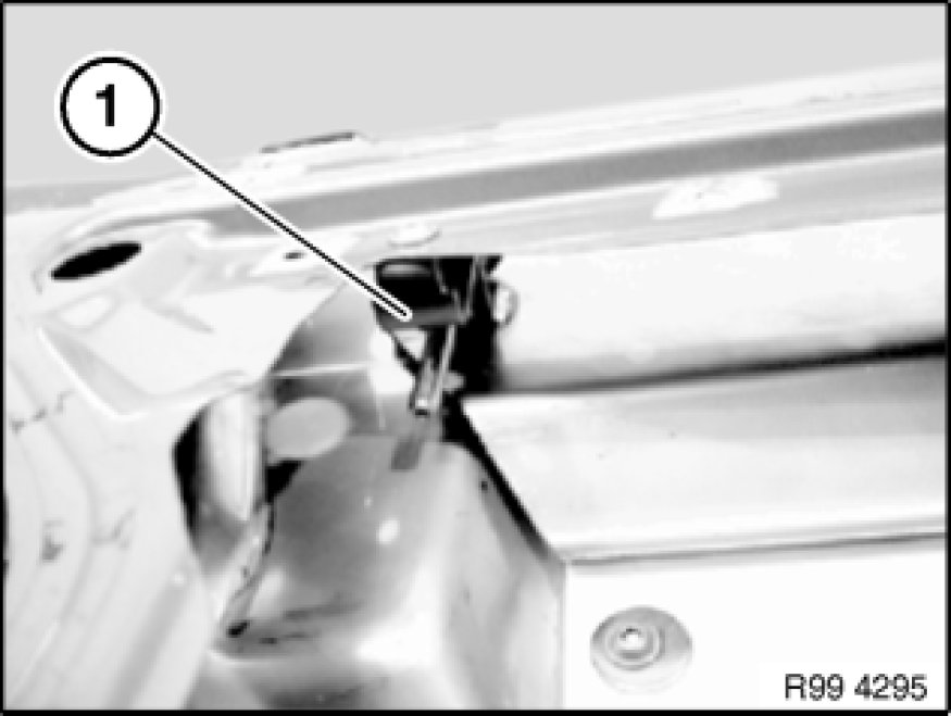Slacken lock nut on hexagon socket head cap screws (1) at front/rear, release hexagon socket head caps screws until door window glass can be fed out towards top rear with special tool 51 3 010.