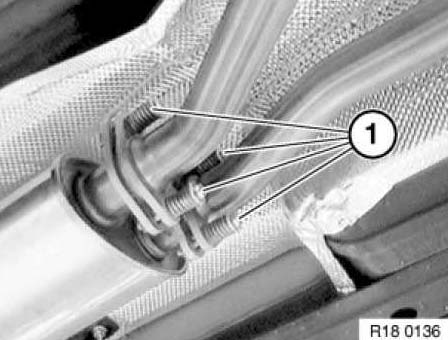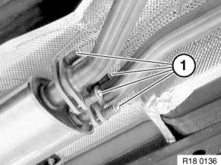 Release screws (1) of rear muffler on intermediate muffler and remove rear muffler.