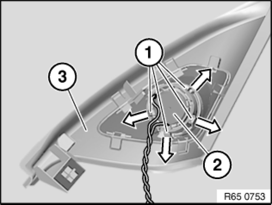 65 13 050 - Removing and installing/replacing speaker (treble speaker in quarterlight mirror)