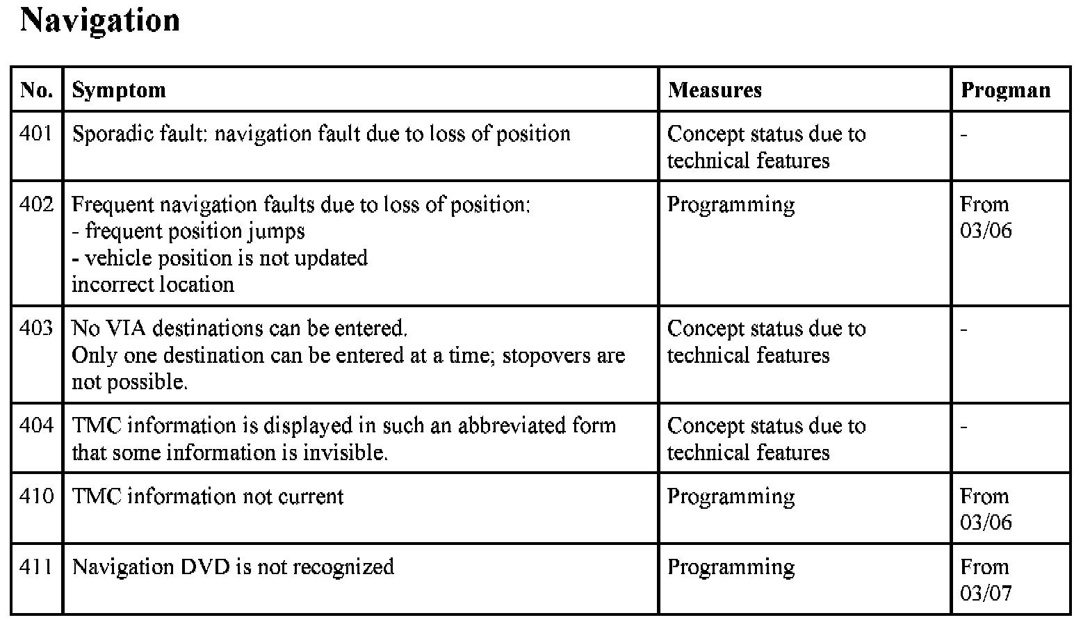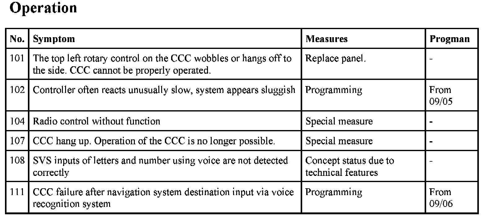 The navigation system Professional (CCC) is a complex control module with a large number of possible fault profiles. The following list shows known symptoms in the functional area CCC audio and navigation. Fault profiles from the functional areas of telephone and Telematic services as well as integrated heating / air conditioner control are not covered in this test module.