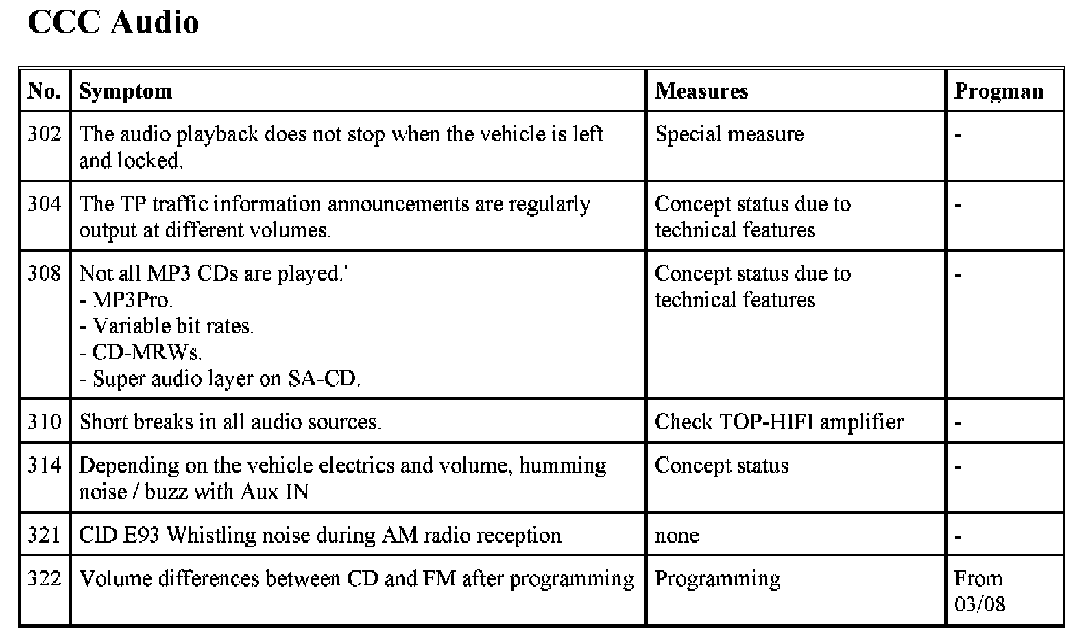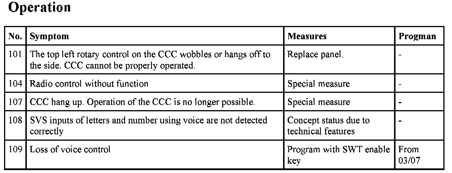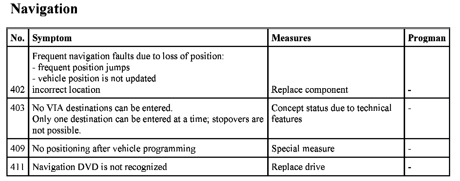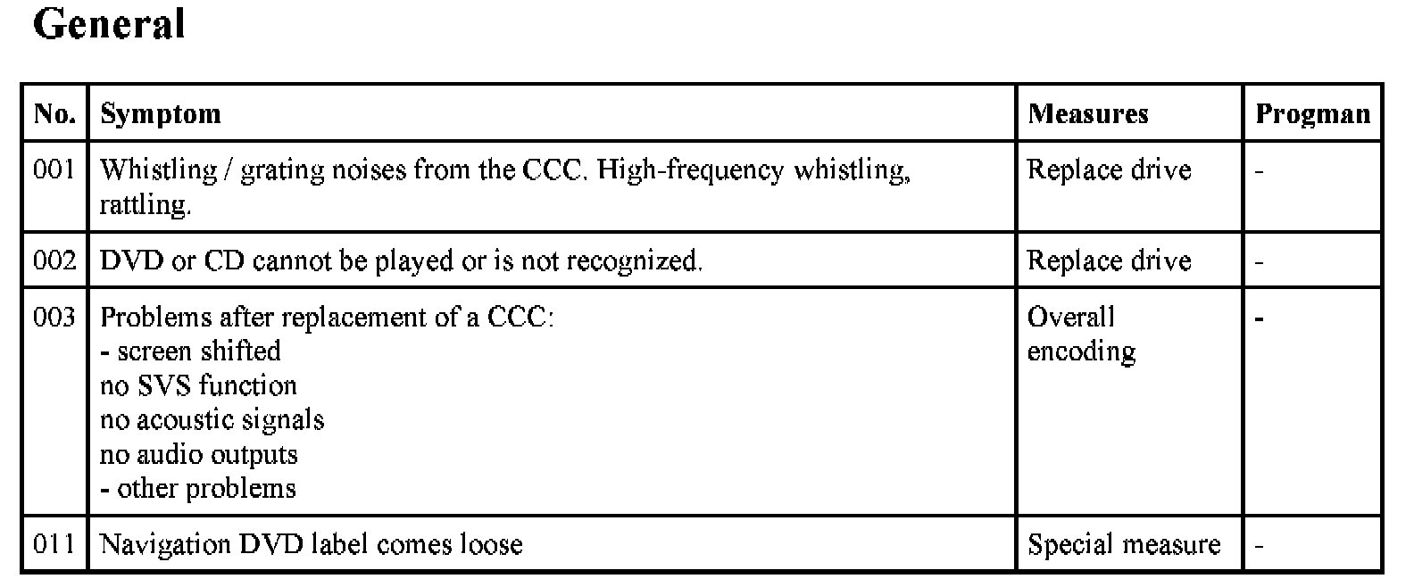 The navigation system Professional (CCC) is a complex control module with a large number of possible fault profiles. The following list shows known symptoms in the functional area CCC audio and navigation. Fault profiles from the functional areas of telephone and Telematic services as well as integrated heating / air conditioner control are not covered in this test module.