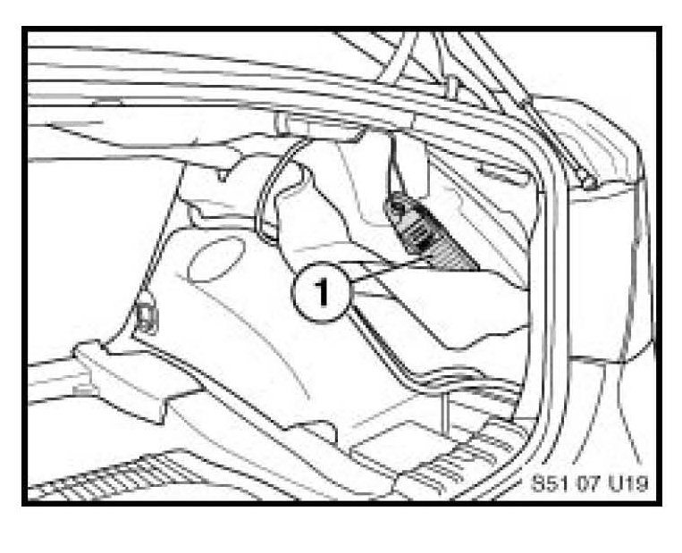 11. Remove the right side trim in the luggage compartment per repair instruction RA 51 47 161.