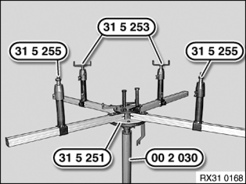 Insert special tools 31 5 253 in telescopic supports of other profile rail pair.